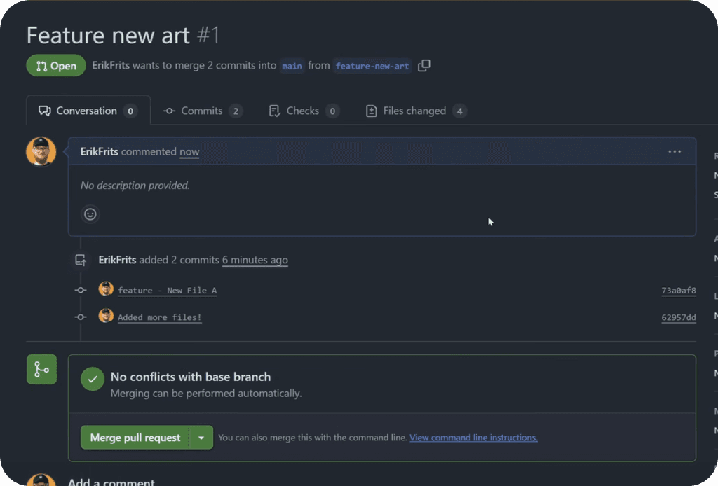⚠️Sometimes you might have conflicts between 2 branches because you modified the same file differently. Then you need to figure out which one to keep or how to combine them.