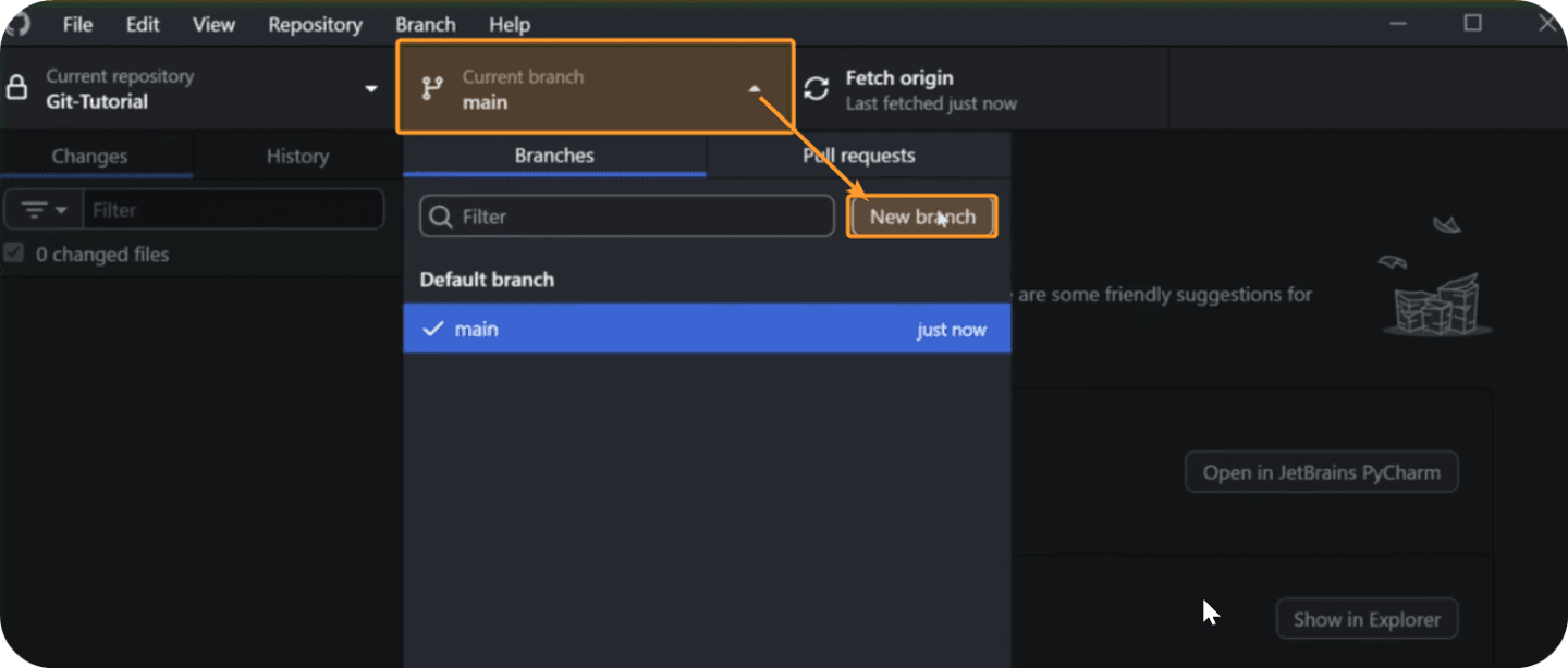 After you create new branches, eventually you'd want to bring them back to the main-branch. And for that you need to create a Pull Request. It's a git terms for creating request for merging 2 branches into 1.